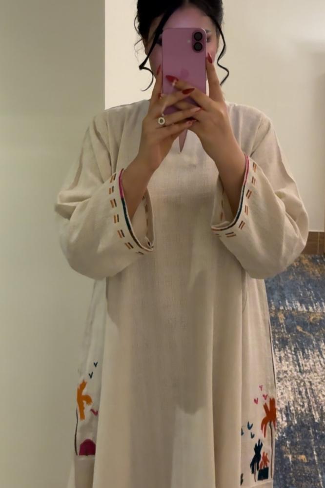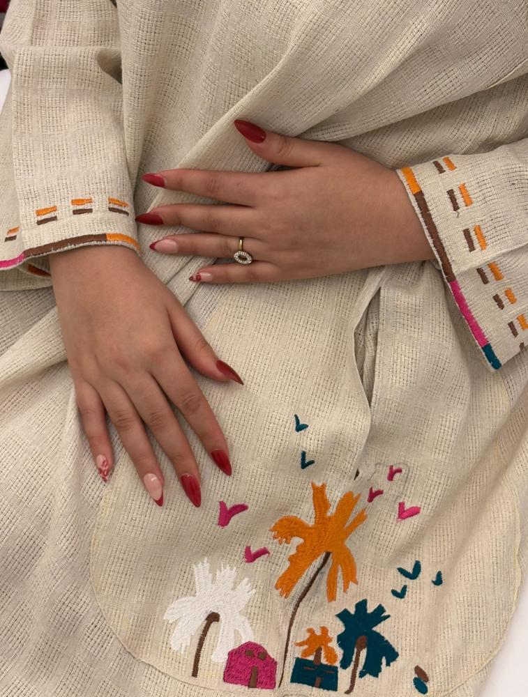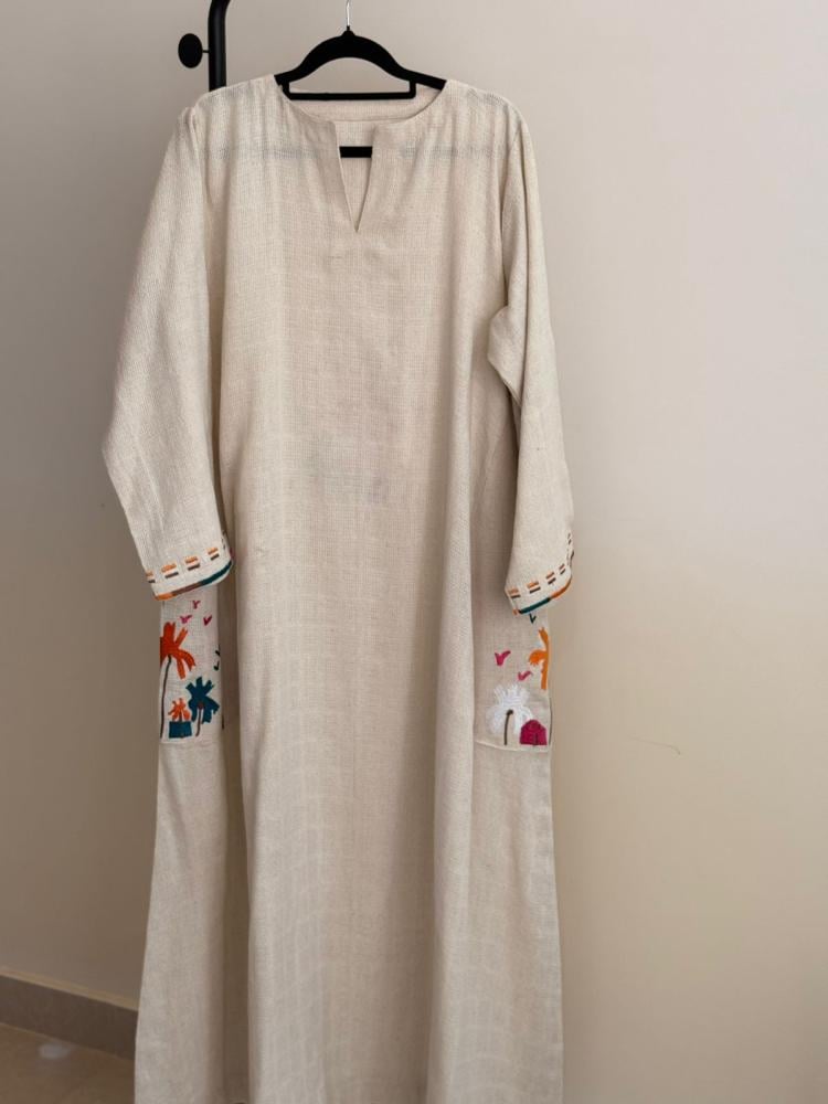• القماش لنن خيش مطرزة بتراثنا العريق نخيل و ناقه بألوان بهيّه