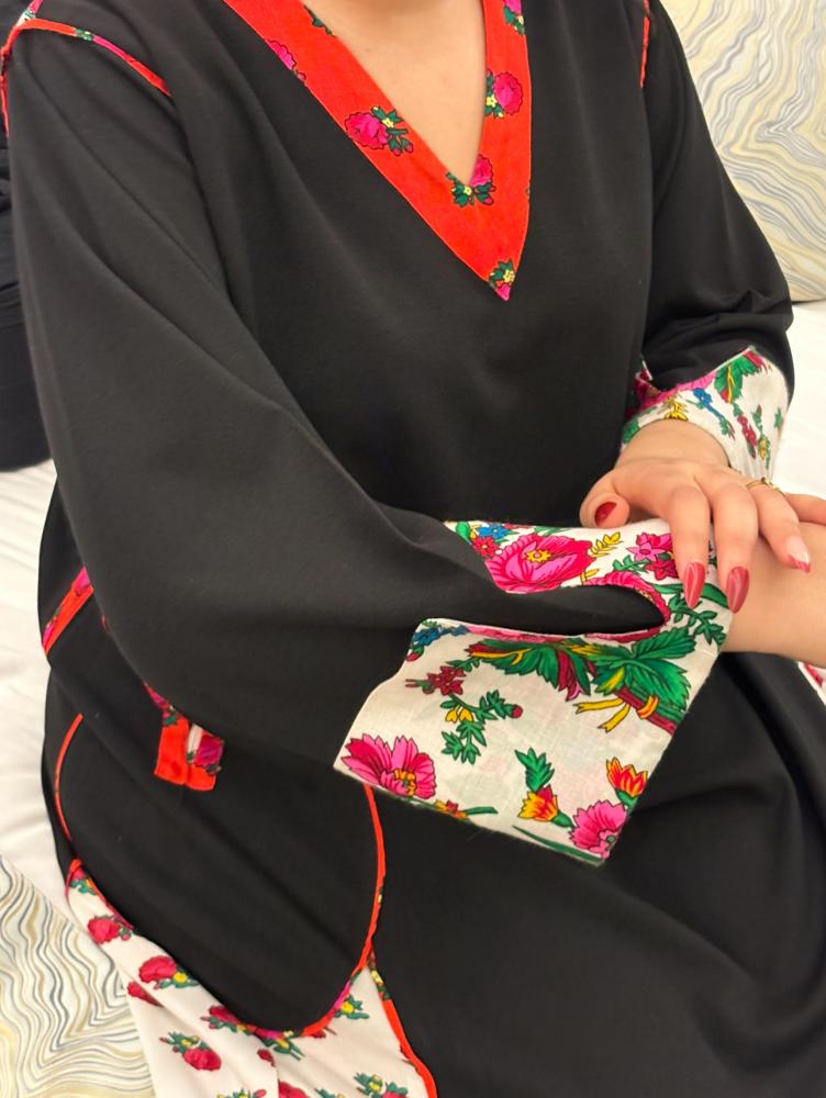 • القماش كريب سترتش مع شالكي لاضافة لمسه نجدية